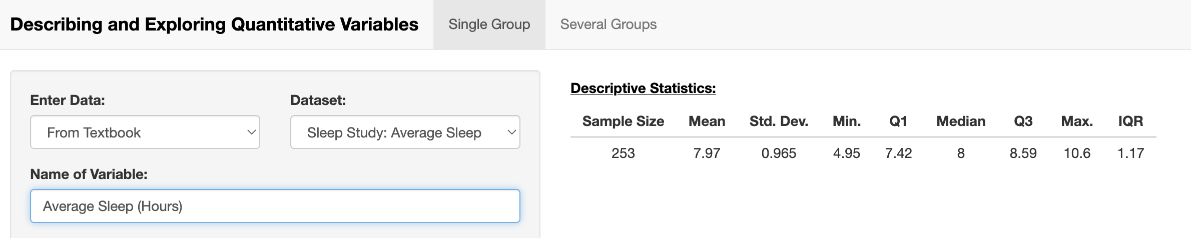 Important: The statistical technology tool does not calculate variance, so you will need to use the tool to calculate the standard deviation and then square it by hand in order to get the variance.