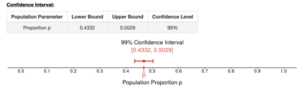 In the next in-class activity, you will need to identify the components of a confidence interval from a summary provided by the DCMP Inference for a Population Proportion tool. You will also need to construct confidence intervals with technology and interpret their meaning.