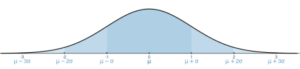 Questions 8 and 9: The following graph shows a normal distribution with a mean of 0 and a standard deviation of 1.