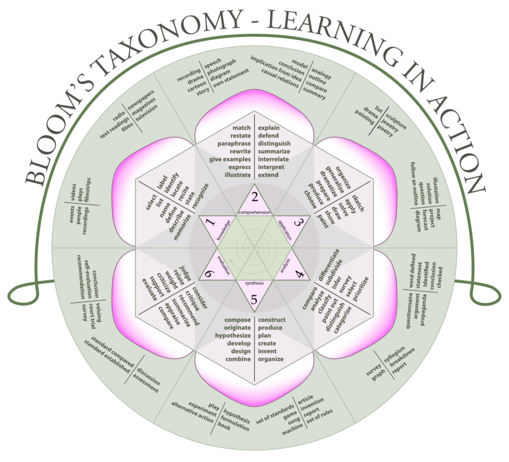 Bloom’s wheel, according to the Bloom’s verbs and matching assessment types. The verbs are intended to be feasible and measurable.