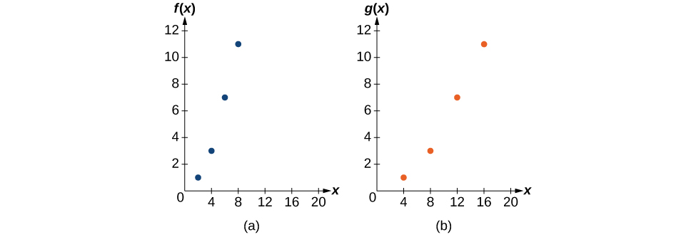 Adding a constant to the inputs or outputs of a function changed the position of a graph with respect to the axes, but it did not affect the shape of a graph. We now explore the effects of multiplying the inputs or outputs by some quantity.