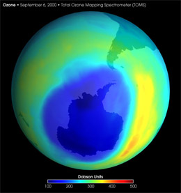 Early descriptive and comparative studies point to problem: In 1957, the British Antarctic Survey (BAS) began a descriptive study of stratospheric ozone levels in an effort to better understand the role that ozone plays in absorbing solar energy (MacDowall & Sutcliffe, 1960). For the next 20 years, the BAS recorded ozone levels and observed seasonal shifts in ozone levels, which they attributed to natural fluctuations. In the mid-1970s, however, the BAS began to note a dramatic drop in ozone levels that they correlated with the change of seasons in the Antarctic. Within a decade, they noted that a seasonal “ozone hole” (Figure 4) had begun to appear over the South Pole (Farman et al., 1985).