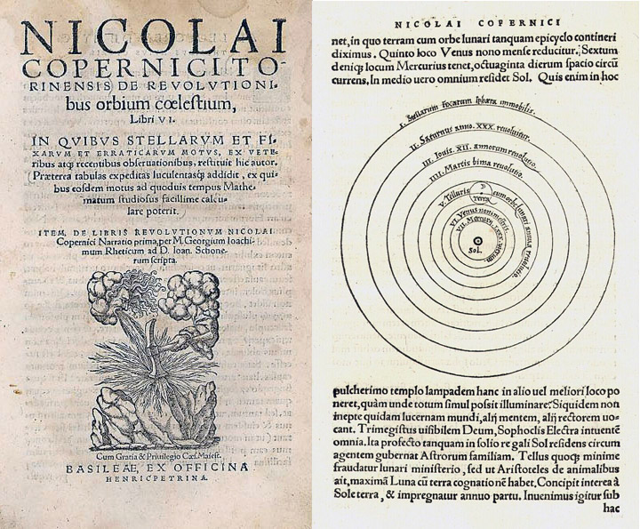 These and other events demonstrate that a scientific approach to addressing questions about the natural world has long been present in many cultures. The roots of modern scientific research methods, however, are considered by many historians to lie in the Scientific Revolution that occurred in Europe in the 16th and 17th centuries. Most historians cite the beginning of the Scientific Revolution as the publication of De Revolutionibus Orbium Coelestium (On the Revolutions of the Heavenly Spheres) in 1543 by the Polish astronomer Nicolaus Copernicus. Copernicus’s careful observation and description of the movement of planets in relation to the Earth led him to hypothesize that the sun was the center of the solar system and the planets revolved around the sun in progressively larger orbits in the following order: Mercury, Venus, Earth, Mars, Jupiter, and Saturn (Figure 1). Though Copernicus was not the first person to propose a heliocentric view of the solar system, his systematic gathering of data provided a rigorous argument that challenged the commonly held belief that Earth was the center of the universe.