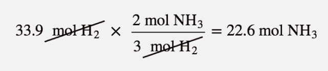 How many grams of NH3 will be produced when 33.9 mol of H2 are reacted according to this chemical equation?